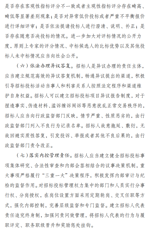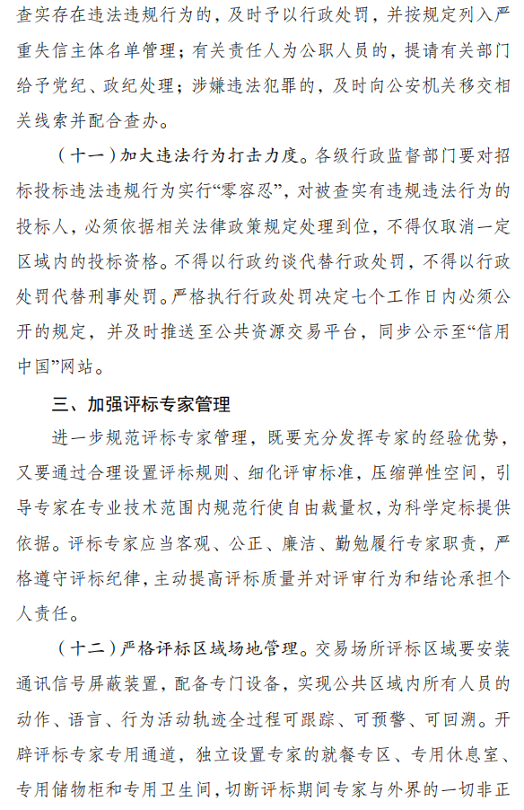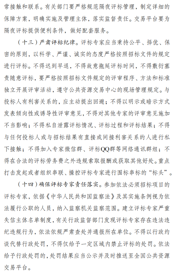 9月30日國家發(fā)改委官網(wǎng)發(fā)布兩則通知: 1、國家發(fā)展改革委關(guān)于向社會(huì)公開征求對《關(guān)于嚴(yán)格執(zhí)行招標(biāo)投標(biāo)法規(guī)制度進(jìn)一步規(guī)范招標(biāo)投標(biāo)主體行為的若干意見(征求意見稿)》意見的公告; 2、國家發(fā)展改革委關(guān)于向社會(huì)征求對《關(guān)于進(jìn)一步規(guī)范公共資源交易平臺服務(wù)行為的若干意見(征求意見稿)》意見的公告。 文件要求: 1、依法保障招標(biāo)人確定中標(biāo)人等環(huán)節(jié)自主權(quán)。 2、招標(biāo)人有權(quán)自行選擇招標(biāo)代理機(jī)構(gòu),任何單位和個(gè)人不得以任何方式為招標(biāo)人指定招標(biāo)代理機(jī)構(gòu)。 1、嚴(yán)禁隨意改變招標(biāo)程序,禁止采用抽簽、搖號、抓鬮等方式直接確定潛在投標(biāo)人、中標(biāo)候選人或中標(biāo)人。 2、不得以肢解發(fā)包、化整為零、招小送大或者通過虛構(gòu)涉密項(xiàng)目、應(yīng)急項(xiàng)目、使用專利技術(shù)等任何形式規(guī)避招標(biāo)。 3、不得以戰(zhàn)略合作、招商引資等理由搞“明招暗定”、“先建后招”的虛假招標(biāo)。 4、不得通過設(shè)置不合理?xiàng)l件排斥、差別對待或限制潛在投標(biāo)人。 1、依托電子招標(biāo)投標(biāo)系統(tǒng),運(yùn)用大數(shù)據(jù)等技術(shù)手段,重點(diǎn)關(guān)注中標(biāo)率異常低、不以中標(biāo)為目的投標(biāo)、涉嫌圍標(biāo)串標(biāo)的“陪標(biāo)專業(yè)戶”。 2、重點(diǎn)打擊涉嫌操縱投標(biāo)或出借資質(zhì)等不法行為導(dǎo)致中標(biāo)率異常高的“標(biāo)王”。 3、重點(diǎn)打擊發(fā)起或者組織串聯(lián)、操控評標(biāo)專家進(jìn)行圍標(biāo)串標(biāo)的“標(biāo)頭”。 1、對招標(biāo)投標(biāo)違法違規(guī)行為實(shí)行“零容忍”。 2、對被查實(shí)有違規(guī)違法行為的投標(biāo)人,必須依據(jù)相關(guān)法律政策規(guī)定處理到位,不得僅取消一定區(qū)域內(nèi)的投標(biāo)資格。 3、不得以行政約談代替行政處罰,不得以行政處罰代替刑事處罰。 4、對評標(biāo)專家,不得以行政約談代替行政處罰,不得僅給予一定區(qū)域內(nèi)禁止評標(biāo)的處罰。 5、加大信用評價(jià)結(jié)果在招標(biāo)投標(biāo)評審中的應(yīng)用,進(jìn)一步健全招標(biāo)投標(biāo)守信激勵(lì)和失信懲戒機(jī)制。 《征求意見稿》明確“進(jìn)一步加大對評標(biāo)情況的公開力度,原則上專家的評分情況、中標(biāo)候選人的比標(biāo)優(yōu)勢以及其他投標(biāo)人未中標(biāo)情況應(yīng)當(dāng)向社會(huì)公開”。 此項(xiàng)規(guī)定既是對《招標(biāo)公告和公示信息發(fā)布管理辦法》(國家發(fā)展改革委2017年第10號令)第六條中“公示評標(biāo)情況”的進(jìn)一步解釋與細(xì)化,同時(shí)也是一種強(qiáng)化監(jiān)督的必然要求,從某種意義上講也是招標(biāo)投標(biāo)監(jiān)督管理的重大舉措。 長期以來,評標(biāo)委員會(huì)不按照招標(biāo)文件載明的評標(biāo)方法和標(biāo)準(zhǔn)進(jìn)行評標(biāo);部分專家存在隨意評分、任性評分或者明顯的“人情分”、“關(guān)系分”等傾向性評分現(xiàn)象;甚至發(fā)生客觀性指標(biāo)評分不一致或者主觀性指標(biāo)評分存在嚴(yán)重畸高、畸低等顯著差別現(xiàn)象,公開專家的評分情況,有利于進(jìn)一步加強(qiáng)評標(biāo)專家的監(jiān)督管理,減少評標(biāo)專家不依法履職現(xiàn)象發(fā)生。 需要說明的是,該文件出臺后在實(shí)際執(zhí)行過程中仍有漏洞可鉆,因?yàn)樵u分情況可以是總分,可以是每一小項(xiàng)的分?jǐn)?shù)。 國家發(fā)改委法規(guī)司曾于2021年5月27日在官網(wǎng)發(fā)布咨詢答復(fù)意見中曾明確指出“關(guān)于是否需要公示評標(biāo)委員會(huì)評分的每一小項(xiàng)的分?jǐn)?shù),國家層面沒有統(tǒng)一規(guī)定,目前各地做法各不相同。招標(biāo)人從提高招投標(biāo)活動(dòng)透明度、接受社會(huì)監(jiān)督的角度出發(fā)自愿公開的,可以在中標(biāo)候選人公示中公布相關(guān)內(nèi)容,但評標(biāo)委員會(huì)成員的名單應(yīng)當(dāng)保密”。 盡管《征求意見稿》與咨詢答復(fù)意見相比,對評分情況公示由原來的可以改為了應(yīng)當(dāng),但如果只公示總分而不公示每一項(xiàng)細(xì)分,意義不大。既然已經(jīng)決定改革,就應(yīng)當(dāng)改革到底,除評標(biāo)委員會(huì)成員名單應(yīng)當(dāng)保密外,中標(biāo)候選人的每一小項(xiàng)分?jǐn)?shù)均應(yīng)當(dāng)公開,涉及到加分項(xiàng)部分應(yīng)同步公示其加分明細(xì)。 陽光是最好的警察,發(fā)改委的中標(biāo)候選人公示新規(guī)必將進(jìn)一步促進(jìn)公共資源交易改革新發(fā)展、創(chuàng)造公開公平公正的新局面。