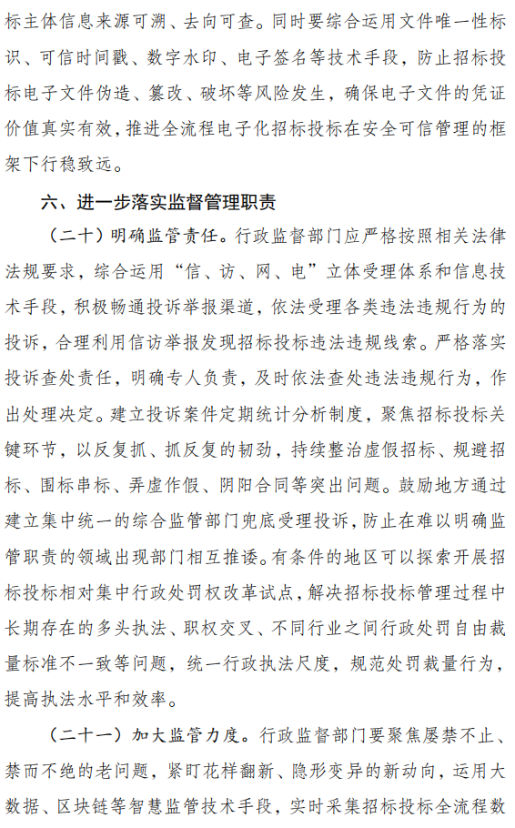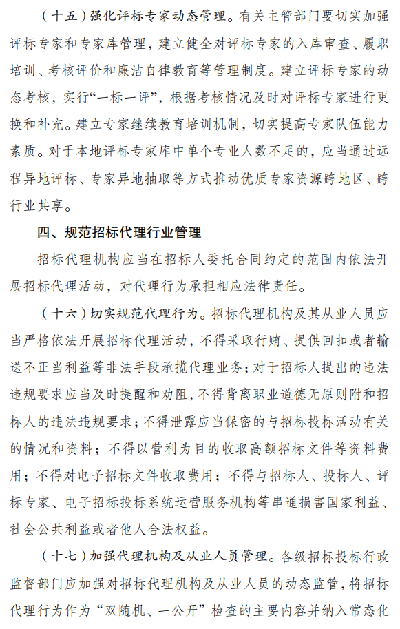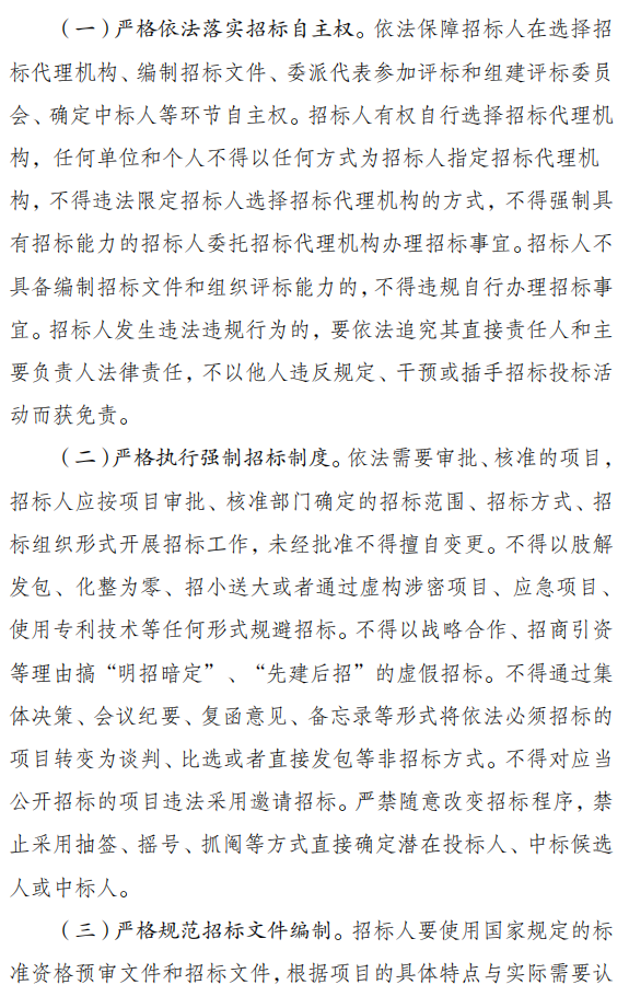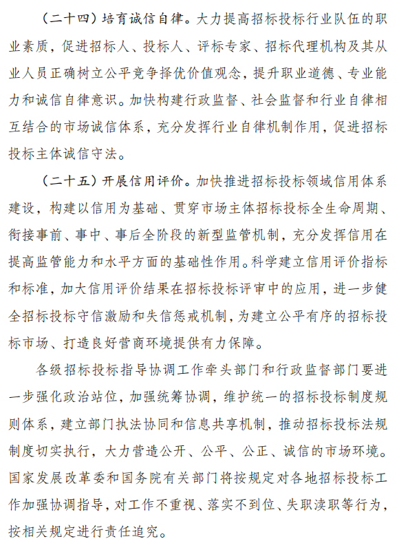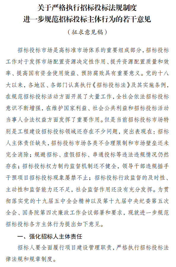 國家發(fā)展改革委關(guān)于向社會(huì)公開征求對《關(guān)于嚴(yán)格執(zhí)行招標(biāo)投標(biāo)法規(guī)制度進(jìn)一步規(guī)范招標(biāo)投標(biāo)主體行為的若干意見(征求意見稿)》意見的公告 為深入貫徹落實(shí)黨的十九屆五中全會(huì)關(guān)于堅(jiān)持平等準(zhǔn)入、公正監(jiān)管、開放有序、誠信守法,形成高效規(guī)范、公平競爭的國內(nèi)統(tǒng)一市場的決策部署,切實(shí)維護(hù)公平競爭秩序,我們商國務(wù)院有關(guān)部門和地方研究起草了《關(guān)于嚴(yán)格執(zhí)行招標(biāo)投標(biāo)法規(guī)制度進(jìn)一步規(guī)范招標(biāo)投標(biāo)主體行為的若干意見(征求意見稿)》,現(xiàn)予公告,向社會(huì)公開征求意見。 此次公開征求意見的時(shí)間是2021年9月30日至10月30日。歡迎各界人士通過網(wǎng)絡(luò)、傳真等方式提出意見,請登錄國家發(fā)展改革委門戶網(wǎng)站(http://www.ndrc.gov.cn)首頁“意見征求”專欄,進(jìn)入“《關(guān)于嚴(yán)格執(zhí)行招標(biāo)投標(biāo)法規(guī)制度進(jìn)一步規(guī)范招標(biāo)投標(biāo)主體行為的若干意見》公開征求意見”欄目,提出意見建議。電子郵件請發(fā)至chndbdating@ndrc.gov.cn,傳真請發(fā)至(010)68502514。 感謝您的參與和支持! 附件:《關(guān)于嚴(yán)格執(zhí)行招標(biāo)投標(biāo)法規(guī)制度進(jìn)一步規(guī)范招標(biāo)投標(biāo)主體行為的若干意見(征求意見稿)》 國家發(fā)展改革委 2021年9月30日