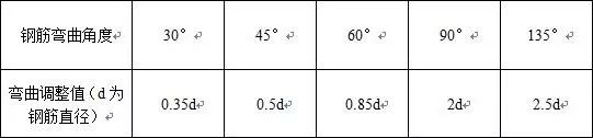 而彎曲調(diào)整值可以根據(jù)不同的彎曲角度進(jìn)行取值。一般來說,可以按下表取值: