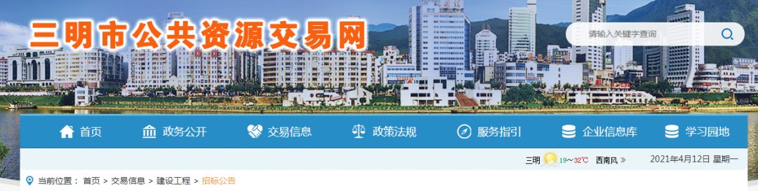 三明市檔案館(檔案數(shù)據(jù)中心)建設(shè)項(xiàng)目 招標(biāo)公告1. 招標(biāo)條件 本招標(biāo)項(xiàng)目三明市檔案館(檔案數(shù)據(jù)中心)建設(shè)項(xiàng)目(招標(biāo)項(xiàng)目名稱)已由三明市發(fā)展和改革委員會(huì)以明發(fā)改審批〔2020〕196號(hào)批準(zhǔn)建設(shè),建設(shè)單位為三明市城市建設(shè)發(fā)展集團(tuán)有限公司,建設(shè)資金來源多渠道籌措,招標(biāo)人為三明市檔案館,委托的招標(biāo)代理單位為福建省建審工程項(xiàng)目管理咨詢有限公司。本項(xiàng)目已具備招標(biāo)條件,現(xiàn)對(duì)該項(xiàng)目的施工進(jìn)行公開招標(biāo)。 2. 項(xiàng)目概況和招標(biāo)范圍 2.1 工程建設(shè)地點(diǎn):三明生態(tài)新城迎賓大道南側(cè); 2.2 工程建設(shè)規(guī)模:總投資約17711萬元; 2.3 招標(biāo)范圍和內(nèi)容: (1)工程類別:房屋建筑工程; (2)招標(biāo)類型:施工總承包; (3)招標(biāo)范圍和內(nèi)容:新建一幢9層檔案館,總建筑面積23248平方米。包含施工圖范圍內(nèi)土建及配套水電安裝工程、裝飾裝修工程、土石方工程、消防工程、人防工程、室外工程等,具體以工程量清單及施工圖紙為準(zhǔn); 其中,用于確定企業(yè)資質(zhì)及等級(jí)的相關(guān)數(shù)據(jù): 本招標(biāo)項(xiàng)目總建筑面積23248平方米。本招標(biāo)項(xiàng)目為應(yīng)急建設(shè)項(xiàng)目; 用于確定注冊(cè)建造師等級(jí)的相關(guān)數(shù)據(jù): 單體建筑面積3000~30000平方米。本招標(biāo)項(xiàng)目為應(yīng)急建設(shè)項(xiàng)目; 用于確定類似工程業(yè)績的相關(guān)數(shù)據(jù):/; 2.4 招標(biāo)控制價(jià)(即最高投標(biāo)限價(jià),下同):暫按 11900.00萬元; 2.5 工期要求:總工期為540個(gè)日歷天,定額工期/個(gè)日歷天(適用于國家或我省對(duì)工期有規(guī)定的項(xiàng)目);其中各關(guān)鍵節(jié)點(diǎn)的工期要求為(如果有)2021年12月31日前封頂; 2.6 標(biāo)段劃分(如果有):/; 2.7 質(zhì)量要求:符合國家現(xiàn)行《工程施工質(zhì)量驗(yàn)收規(guī)范》及相關(guān)規(guī)程規(guī)范合格標(biāo)準(zhǔn),滿足業(yè)主關(guān)于質(zhì)量的相關(guān)要求,創(chuàng)建福建省“閩江杯”優(yōu)質(zhì)工程獎(jiǎng)。 3. 投標(biāo)人資格要求及審查辦法 3.1 本招標(biāo)項(xiàng)目要求投標(biāo)人須具備有效的不低于三級(jí)建筑工程施工總承包資質(zhì)和《施工企業(yè)安全生產(chǎn)許可證》。(無需資質(zhì)的項(xiàng)目,從其規(guī)定)/ 3.2 投標(biāo)人擬擔(dān)任本招標(biāo)項(xiàng)目的項(xiàng)目負(fù)責(zé)人(即項(xiàng)目經(jīng)理,下同)須具備有效的不低于二級(jí)建筑工程專業(yè)注冊(cè)建造師執(zhí)業(yè)資格,并具備有效的安全生產(chǎn)考核合格證書(B證)。(無需資質(zhì)的項(xiàng)目,從其規(guī)定)/ 3.3 本招標(biāo)項(xiàng)目不接受聯(lián)合體投標(biāo)。招標(biāo)人接受聯(lián)合體投標(biāo)的,投標(biāo)人應(yīng)優(yōu)先選用福建省建筑業(yè)龍頭企業(yè)作為聯(lián)合體成員,自愿組成聯(lián)合體的應(yīng)由/為牽頭人,且各方應(yīng)具備其所承擔(dān)招標(biāo)項(xiàng)目承包內(nèi)容的相應(yīng)資質(zhì)條件;承擔(dān)相同承包內(nèi)容的專業(yè)單位組成聯(lián)合體的,按照資質(zhì)等級(jí)較低的單位確定資質(zhì)等級(jí)。 3.4 本招標(biāo)項(xiàng)目不應(yīng)用福建省建筑施工企業(yè)信用綜合評(píng)價(jià)分值。應(yīng)用福建省建筑施工企業(yè)信用綜合評(píng)價(jià)分值的項(xiàng)目,投標(biāo)人的企業(yè)季度信用得分為/類。應(yīng)用福建省建筑施工企業(yè)信用綜合評(píng)價(jià)分值的,投標(biāo)人的企業(yè)季度信用得分不得低于60分;以聯(lián)合體參與投標(biāo)的,投標(biāo)人的企業(yè)季度信用得分按具有/施工總承包資質(zhì)的聯(lián)合體成員中的最低企業(yè)季度信用得分確定。投標(biāo)人的企業(yè)季度信用得分,可通過福建省建筑施工企業(yè)信用綜合評(píng)價(jià)系統(tǒng)(從福建住房和城鄉(xiāng)建設(shè)網(wǎng)的“福建省住房和城鄉(xiāng)建設(shè)綜合監(jiān)管服務(wù)平臺(tái)”登錄)查詢。 3.5 投標(biāo)人“類似工程業(yè)績”要求:/個(gè);“類似工程業(yè)績”是指:自本招標(biāo)項(xiàng)目在法定媒介發(fā)布招標(biāo)公告之日的前五年內(nèi)(含本招標(biāo)項(xiàng)目在法定媒介發(fā)布招標(biāo)公告之日)完成的并經(jīng)竣工驗(yàn)收合格的/。 3.6 各投標(biāo)人均可就本招標(biāo)項(xiàng)目上述標(biāo)段中的/個(gè)標(biāo)段投標(biāo),但最多允許中標(biāo)/個(gè)標(biāo)段。(適用于分標(biāo)段的招標(biāo)項(xiàng)目) 3.7 其他資格要求:①根據(jù)閩建筑〔2015〕35號(hào)、閩建辦筑〔2015〕13號(hào)文件規(guī)定:省外建筑企業(yè)到我省開展建筑活動(dòng)實(shí)行信息登記。省外建筑企業(yè)應(yīng)當(dāng)?shù)卿浉=ㄗ》亢统青l(xiāng)建設(shè)網(wǎng)建筑市場綜合監(jiān)管信息平臺(tái)的相應(yīng)信息系統(tǒng),填報(bào)企業(yè)基本信息和人員信息,并對(duì)填報(bào)信息真實(shí)性、完整性負(fù)責(zé)。在我省開展建筑活動(dòng)的省外建筑企業(yè)信息以“省外信息登記系統(tǒng)”所登記的信息為準(zhǔn)。②根據(j