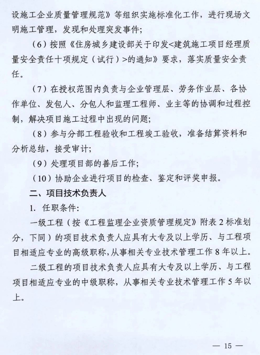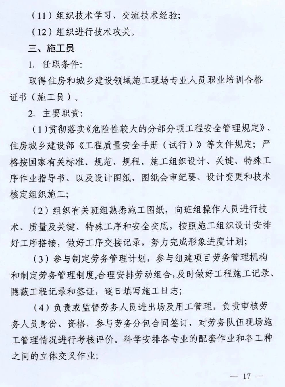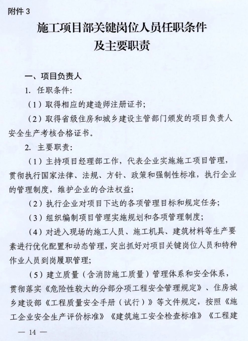 《湖南省建筑工程施工項(xiàng)目部和現(xiàn)場(chǎng)監(jiān)理部關(guān)鍵崗位人員配備管理辦法》 第一條 為規(guī)范我省房屋建筑和市政基礎(chǔ)設(shè)施工程(以下簡(jiǎn)稱(chēng)“建筑工程”)施工項(xiàng)目部現(xiàn)場(chǎng)監(jiān)理部關(guān)鍵崗位人員配備和管理,確保建筑工程質(zhì)量和安全生產(chǎn),根據(jù)《建設(shè)工程質(zhì)量管理?xiàng)l例》《建設(shè)工程安全生產(chǎn)管理?xiàng)l例》《湖南省建設(shè)工程質(zhì)量和安全生產(chǎn)管理?xiàng)l例》《建設(shè)工程消防設(shè)計(jì)審查驗(yàn)收管理暫行規(guī)定》(住房和城鄉(xiāng)建設(shè)部令第51號(hào))、住房和城鄉(xiāng)建設(shè)部《建筑施工企業(yè)安全生產(chǎn)管理機(jī)構(gòu)及專(zhuān)職安全生產(chǎn)管理人員配備辦法》(建質(zhì)(2008)91號(hào))、《住房和城鄉(xiāng)建設(shè)部關(guān)于印發(fā)建筑工程施工發(fā)包與承包違法行為認(rèn)定查處管理法的通知》(建市規(guī)(2019)1號(hào))和有關(guān)法律法規(guī)、標(biāo)準(zhǔn)規(guī)范等規(guī)定,結(jié)合本省實(shí)際,制定本辦法。 第二條 在本省行政區(qū)域內(nèi)從事新建、改建、擴(kuò)建房屋建筑工程(包括與其配套的線(xiàn)路管道和設(shè)備安裝工程、裝修工程)和市政基礎(chǔ)設(shè)施工程等活動(dòng)的施工項(xiàng)目部、現(xiàn)場(chǎng)監(jiān)理部關(guān)鍵崗位人員的考核、配備和管理適用本辦法。 本辦法所稱(chēng)施工項(xiàng)目部是指建筑施工企業(yè)為完成建筑工程施工合同任務(wù)派駐施工現(xiàn)場(chǎng)的施工管理機(jī)構(gòu);現(xiàn)場(chǎng)監(jiān)理部是指工程監(jiān)理企業(yè)根據(jù)建設(shè)工程監(jiān)理合同派駐施工現(xiàn)場(chǎng)的監(jiān)理機(jī)構(gòu)。 本辦法所稱(chēng)施工項(xiàng)目部關(guān)鍵崗位人員是指項(xiàng)目負(fù)責(zé)人、項(xiàng)目技術(shù)負(fù)責(zé)人、施工員、專(zhuān)職安全員、質(zhì)量員;現(xiàn)場(chǎng)監(jiān)理部關(guān)鍵崗位人員是指總監(jiān)理工程師(總監(jiān)代表)、專(zhuān)業(yè)監(jiān)理工程師、監(jiān)理員。 第三條 建筑工程施工項(xiàng)目部、現(xiàn)場(chǎng)監(jiān)理部關(guān)鍵崗位人員數(shù)量不得低于本辦法規(guī)定(施工項(xiàng)目部關(guān)鍵崗位人員配備標(biāo)準(zhǔn)見(jiàn)附件1、現(xiàn)場(chǎng)監(jiān)理部關(guān)鍵崗位人員配備標(biāo)準(zhǔn)見(jiàn)附件2),且必須按規(guī)定認(rèn)真履行崗位職責(zé)(施工項(xiàng)目部關(guān)鍵崗位人員任職條件和職責(zé)詳見(jiàn)附件3,現(xiàn)場(chǎng)監(jiān)理部關(guān)鍵崗位人員任職條件和職責(zé)詳見(jiàn)附件4)。施工企業(yè)應(yīng)根據(jù)工程需要配備其他相應(yīng)的管理人員。 建筑施工企業(yè)、工程監(jiān)理企業(yè)應(yīng)與任命的施工項(xiàng)目部、現(xiàn)場(chǎng)監(jiān)理部關(guān)鍵崗位人員訂立勞動(dòng)合同、建立勞動(dòng)工資關(guān)系。住房城鄉(xiāng)建設(shè)主管部門(mén)及其質(zhì)量安全監(jiān)督機(jī)構(gòu)監(jiān)督檢查時(shí),應(yīng)重點(diǎn)查驗(yàn)施工項(xiàng)目部項(xiàng)目負(fù)責(zé)人、項(xiàng)目技術(shù)負(fù)責(zé)人、專(zhuān)職安全員、質(zhì)量員以及現(xiàn)場(chǎng)監(jiān)理部總監(jiān)理工程師(總監(jiān)代表)是否由企業(yè)依法為其繳納社會(huì)養(yǎng)老保險(xiǎn)。 第四條 施工項(xiàng)目部關(guān)鍵崗位人員不得同時(shí)在其他建筑工程項(xiàng)目中任職。 經(jīng)建設(shè)單位同意,國(guó)家注冊(cè)監(jiān)理工程師可以在同一城市同時(shí)擔(dān)任不超過(guò)3個(gè)建筑工程項(xiàng)目(以監(jiān)理合同為準(zhǔn))的總監(jiān)理工程師。對(duì)在同一城市同時(shí)擔(dān)任多個(gè)建筑工程項(xiàng)目總監(jiān)理工程師的,監(jiān)理單位應(yīng)在其監(jiān)理的各個(gè)建筑工程項(xiàng)目現(xiàn)場(chǎng)配備總監(jiān)理工程師代表。專(zhuān)業(yè)監(jiān)理工程師、監(jiān)理員不得同時(shí)在2個(gè)及以上建筑工程項(xiàng)目的項(xiàng)目監(jiān)理部任職。安裝專(zhuān)業(yè)(水、電、暖通專(zhuān)業(yè))監(jiān)理工程師可以同時(shí)在同一城市不超過(guò)3個(gè)項(xiàng)目中任職,但須經(jīng)建設(shè)單位同意并報(bào)工程質(zhì)量安全監(jiān)督機(jī)構(gòu)。 第五條 工程項(xiàng)目建設(shè)單位在招標(biāo)文件中應(yīng)要求投標(biāo)人按國(guó)家和省有關(guān)法律法規(guī)、規(guī)范標(biāo)準(zhǔn)和本辦法規(guī)定配備建筑工程施工項(xiàng)目部、現(xiàn)場(chǎng)監(jiān)理部關(guān)鍵崗位人員。建筑施工企業(yè)、工程監(jiān)理企業(yè)在參與投標(biāo)時(shí),應(yīng)根據(jù)工程項(xiàng)目的規(guī)模、特點(diǎn)和招標(biāo)文件要求,在投標(biāo)文件中明確項(xiàng)目經(jīng)理、總監(jiān)理工程師配備情況及其他關(guān)鍵崗位人員數(shù)量。 招標(biāo)人在中標(biāo)通知書(shū)中應(yīng)注明項(xiàng)目經(jīng)理或總監(jiān)理工程師姓名及證號(hào)。招標(biāo)人或招標(biāo)代理機(jī)構(gòu)應(yīng)及時(shí)將項(xiàng)目負(fù)責(zé)人、總監(jiān)理工程師(總監(jiān)代表)信息錄入“湖南省工程項(xiàng)目動(dòng)態(tài)監(ji